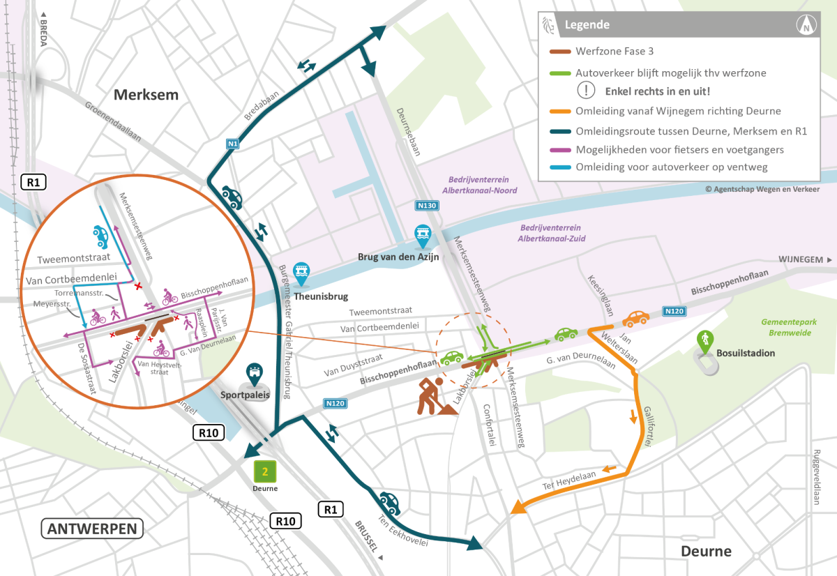 Omleiding tijdens fase 3 (14 juni tot midden juli). © AWV |