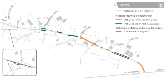 Van 30 juni tot en met 13 juli plaatsen we de schermen tussen de rotondes Berlaarbaan en Putsesteenweg (N15). Van 18 tot en met 30 augustus zijn de schermen tussen de Mechelsesteenweg en de rotonde Berlaarbaan aan de beurt.