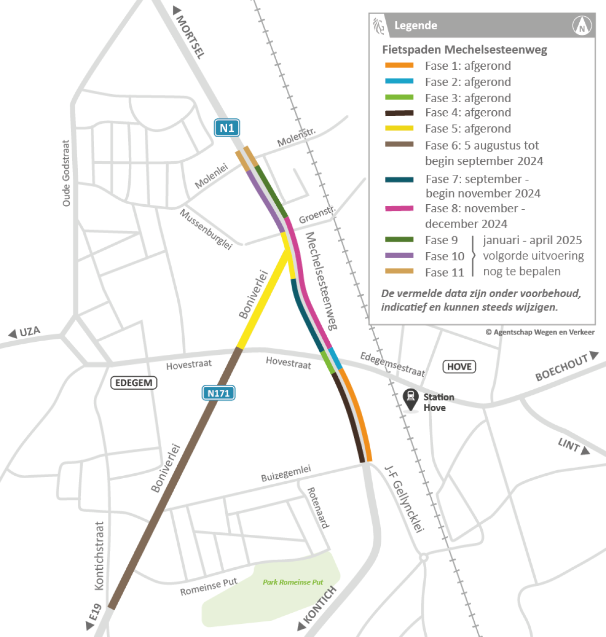 De planning werd opgemaakt onder voorbehoud van gunstige werf- en weersomstandigheden en kan bijgevolg nog wijzigen. |