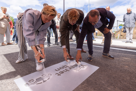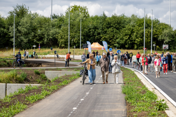 De nieuwe ontsluitingsweg is open! Vorige week maandag werd deze feestelijk ingehuldigd. Heb je de weg nog niet gebruikt? Hieronder vind je handige routeplannetjes voor de fiets en de auto. Deze week zie je nog enkele machines aan het werk. Daarna neemt de aannemer bouwverlof zodat hij de laatste werken uitgerust kan hervatten op 4 augustus. Die afwerkingen brengen weinig tot geen verkeershinder met zich mee.