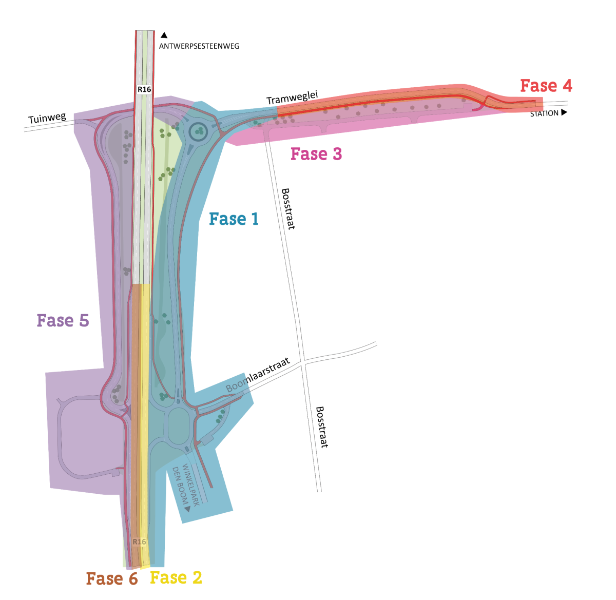 Fase 1 op onderstaande kaart is naar verwachting in het voorjaar van 2025 klaar. De timing van de volgende fases communiceren we zodra de planning gekend is. |